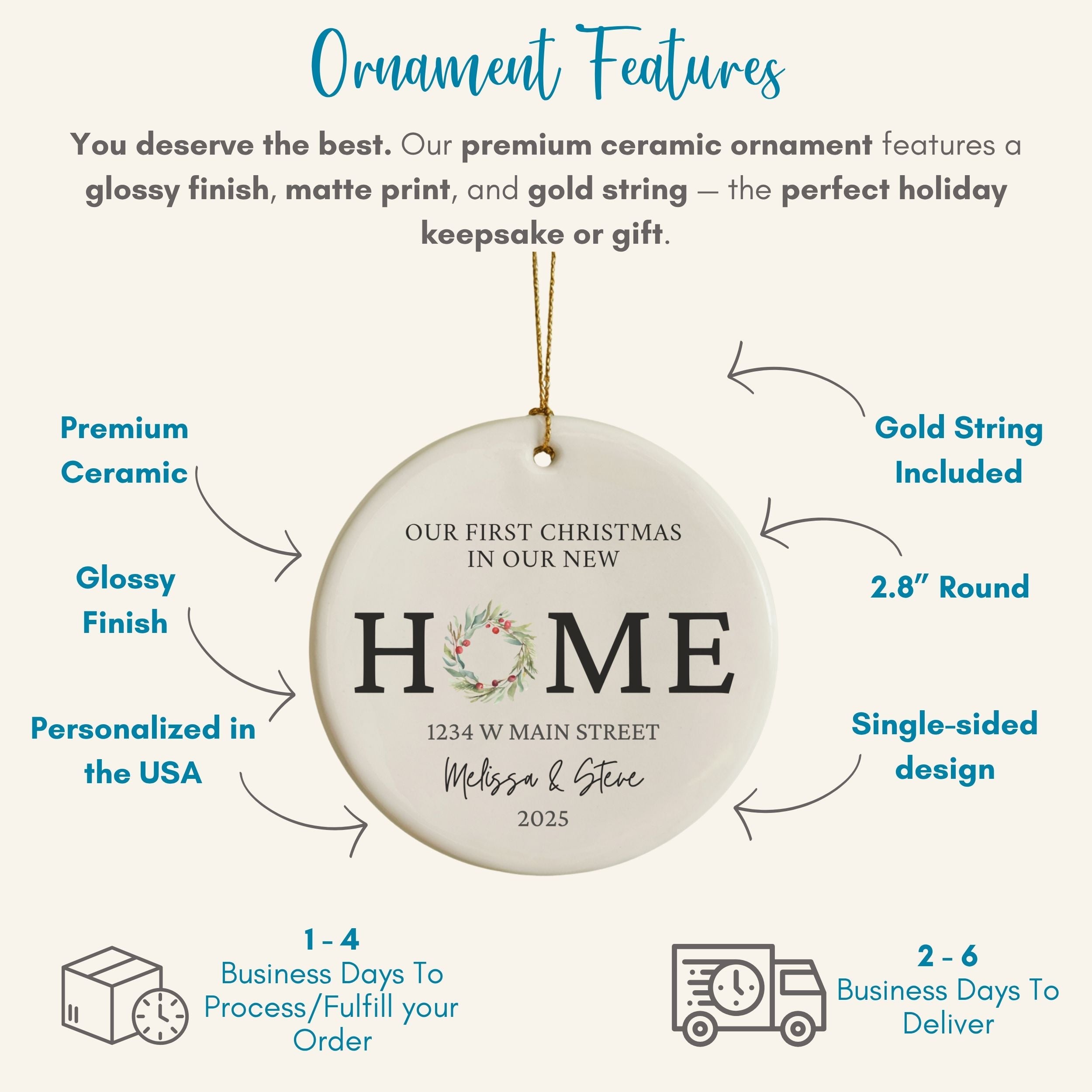 ✅ ABOUT OUR First Christmas In New Home Ceramic Ornament