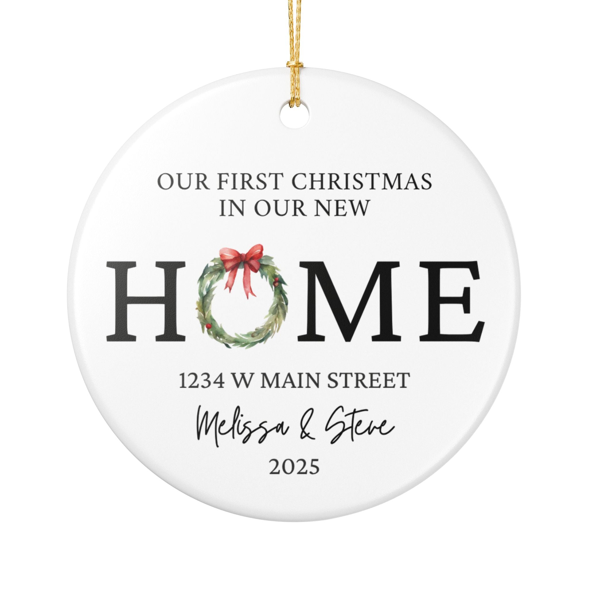 Celebrate your first Christmas together in your new home with this beautifully personalized ornament! Featuring your custom address and year, it’s the perfect gift for couples starting a new chapter — a timeless keepsake for your holiday tree.